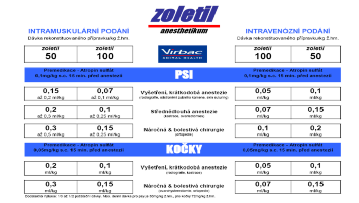Zoletil - Dávkovací tabulka